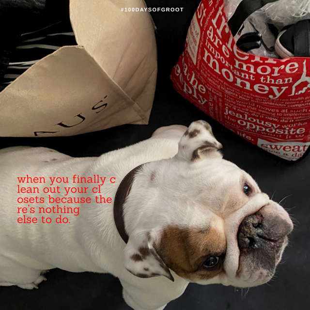 I have 3 rescues. A Newfoundland, Jack Russel, and our newest one is a three year old English Bulldog. He’s lazy. He makes more bodily noises than I knew were possible. And he only has one look: the look of indifference. His name is Groot, and he is the best worst dog I’ve ever had. He came into our family two years ago, and despite a huge amount of destruction the first year, (including eating a new couch, countless pillows, glasses, shoes…) my daughter, husband and I have never had a dog that makes us laugh every single day.